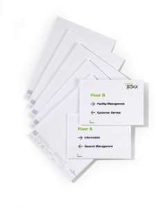 - Papierowe wkłady do wydruku etykiet w rozmiarze A5.