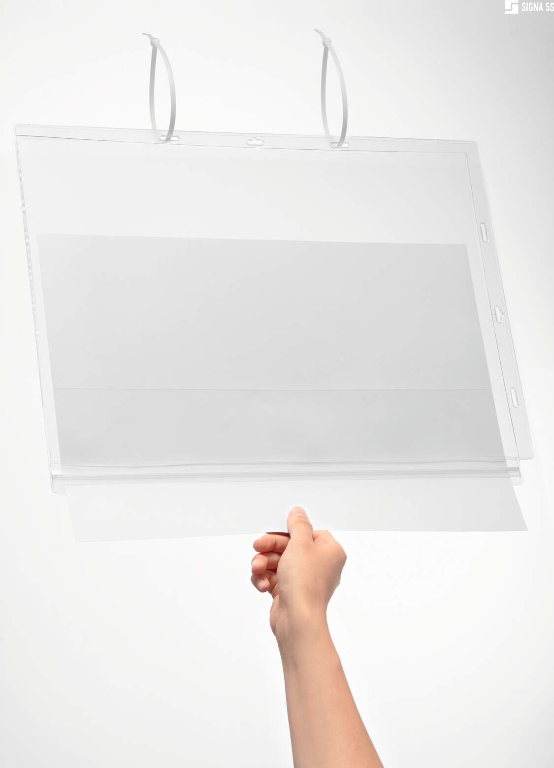 - Kieszeń na plakaty nadaje się idealnie na informacje umieszczane na zewnątrz lub w wilgotnych pomieszczeniach jak np. centra ogrodnicze, sauna, baseny, gdzie informacje narażone są na kontakt z wodą