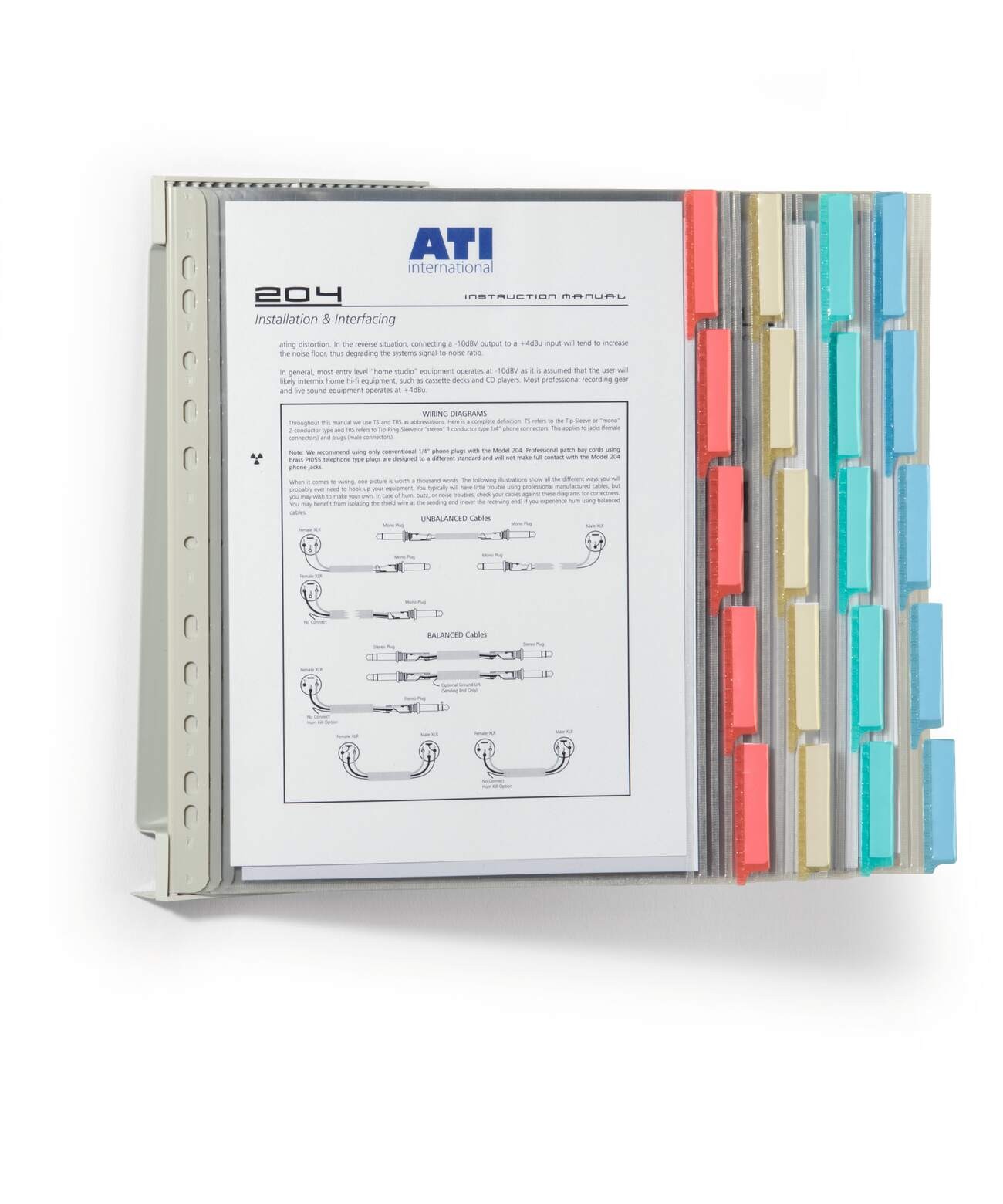 - Panele prezentacyjne wykonane z przezroczystej twardej folii z wgrzanym indeksem z podziałką 5/5 i wkładkami do opisu