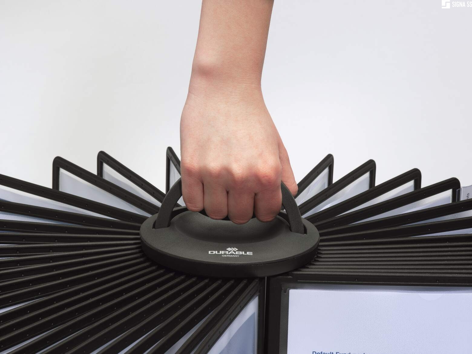 - Chowany, ergonomiczny uchwyt ułatwia obracanie systemu prezentacyjnego i zapewnia prosty transport