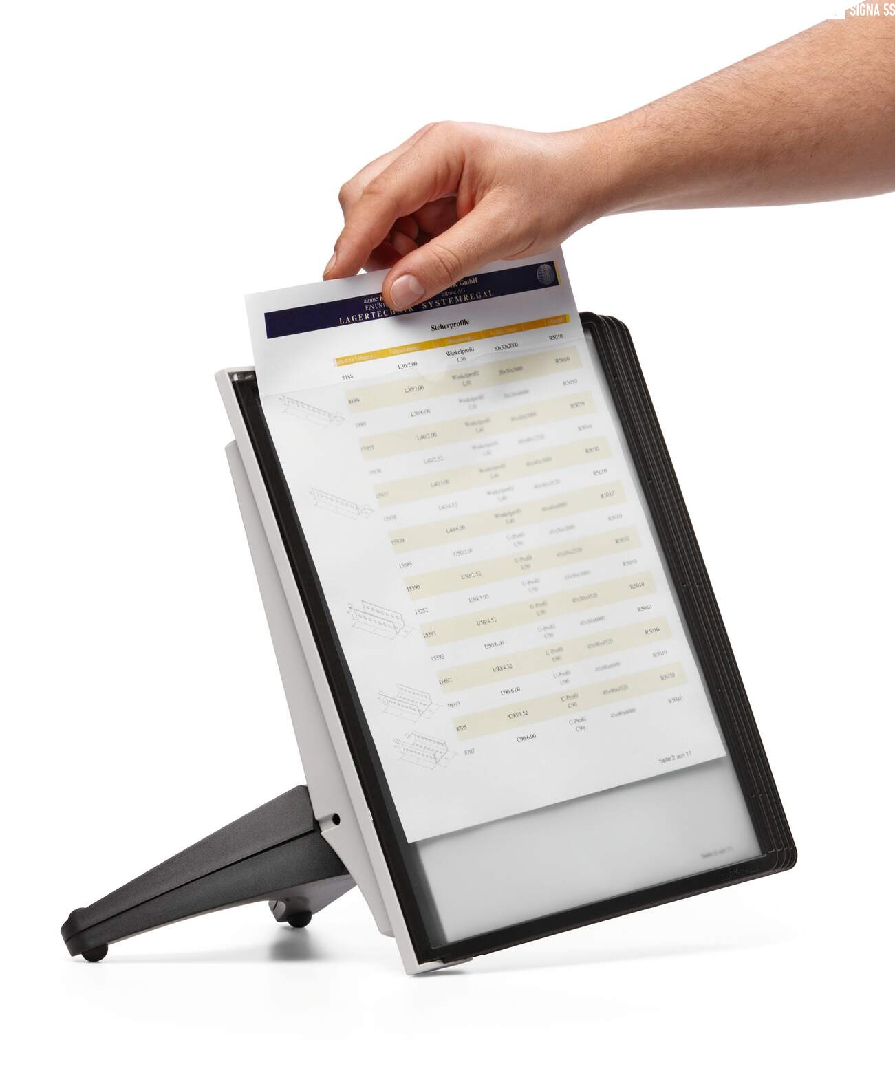 - Zajmujący mało miejsca Stojak stołowy do prezentacji z 5 panelami SHERPA w formacie A4