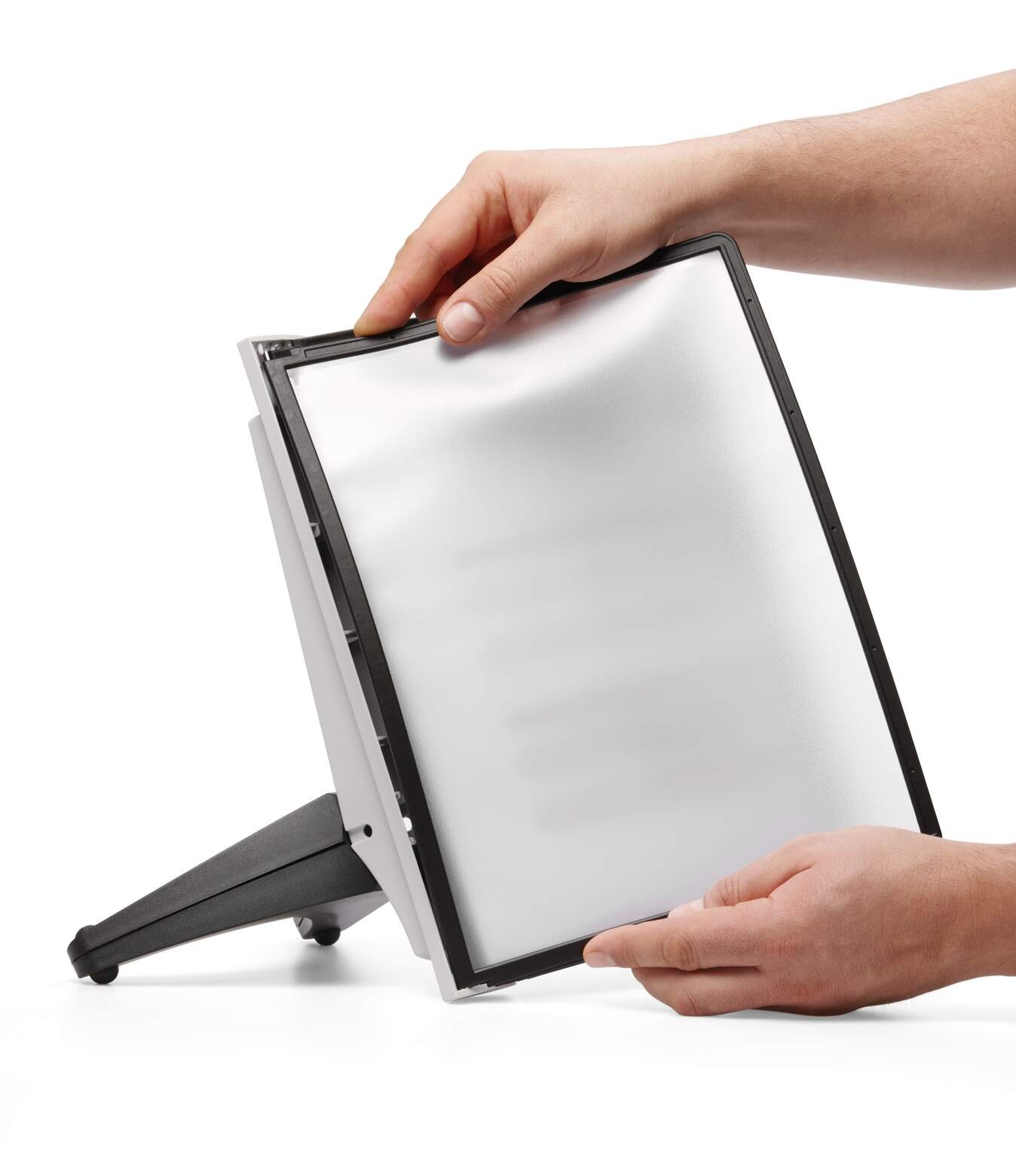 - Panele prezentacyjne wykonane z polipropylenu, z kolorową ramką i folią nadającą się do skanerów dzięki niewielkiemu efektowi odbicia światła