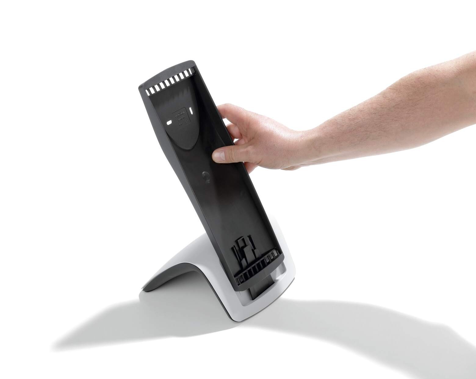 - Antypoślizgowy stojak stołowy w kolorze czarnym/szarym gwarantujący dobrą stabilność