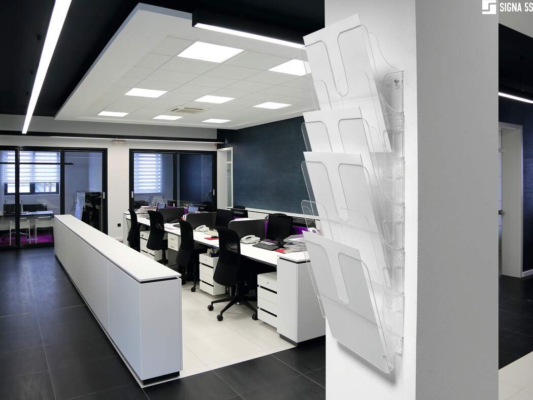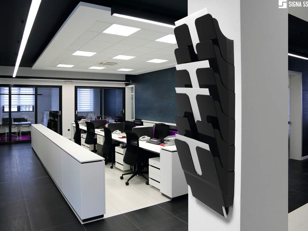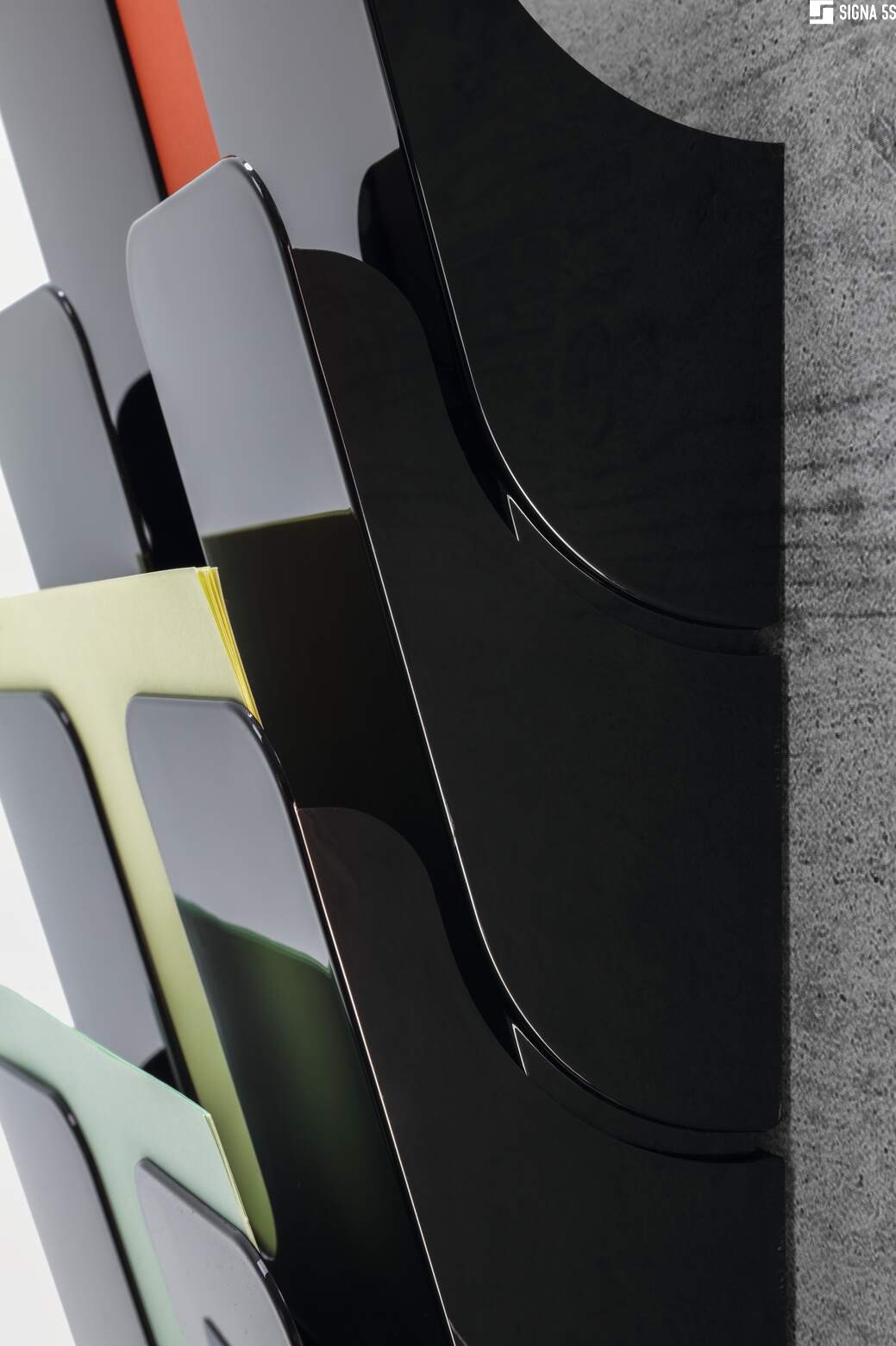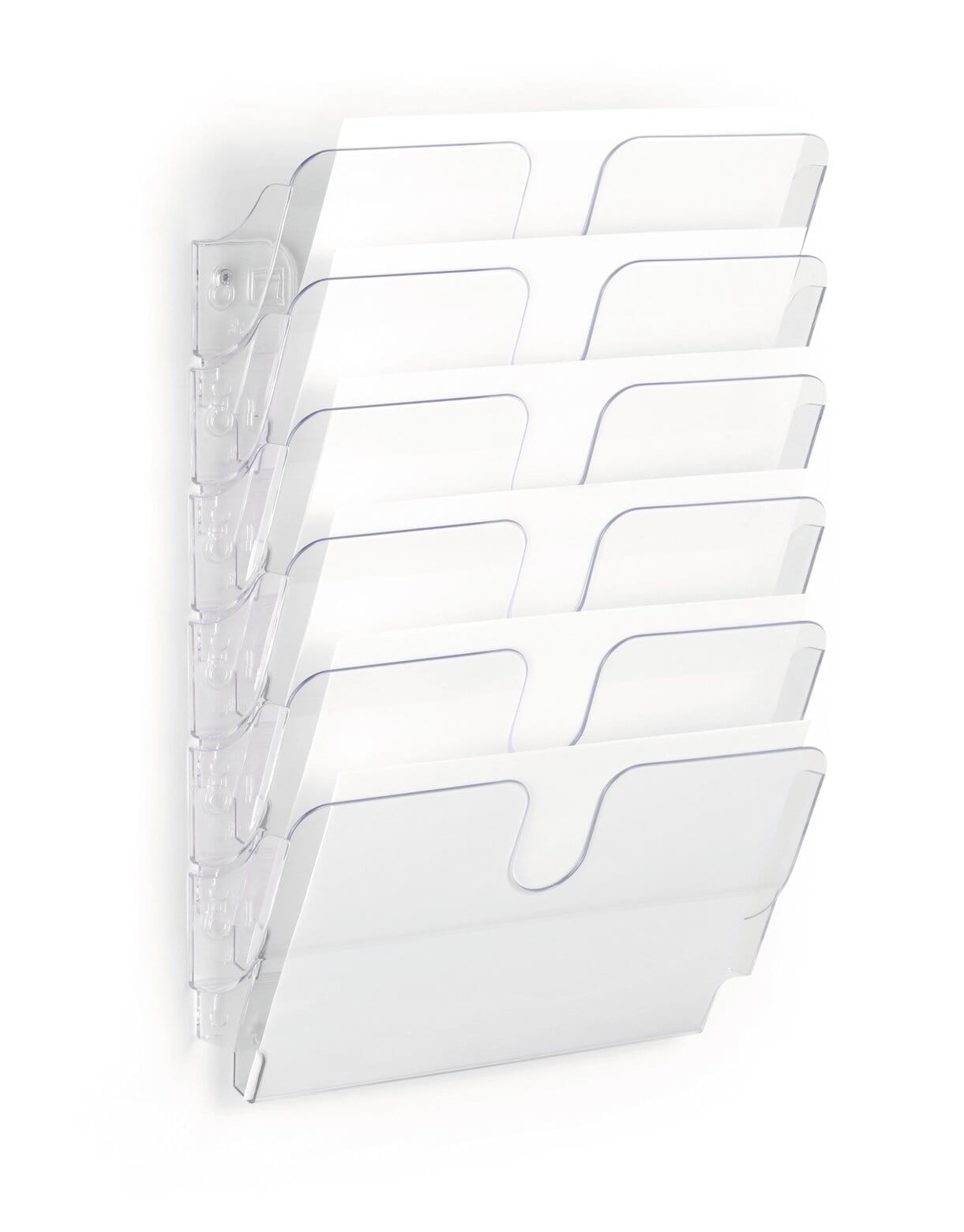 Ten naścienny zasobnik to doskonałe rozwiązanie do przechowywania prospektów lub dokumentów w formacie A4, ustawionych pionowo lub poziomo. Posiada pojemność 23 mm, możliwość rozbudowy i maksymalną nośność około 6 kg. Doskonale sprawdza się jako pomocnik w recepcji, poczekalniach oraz na targach handlowych.