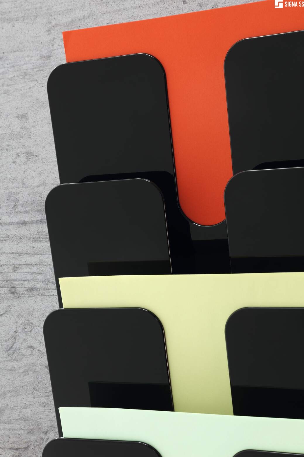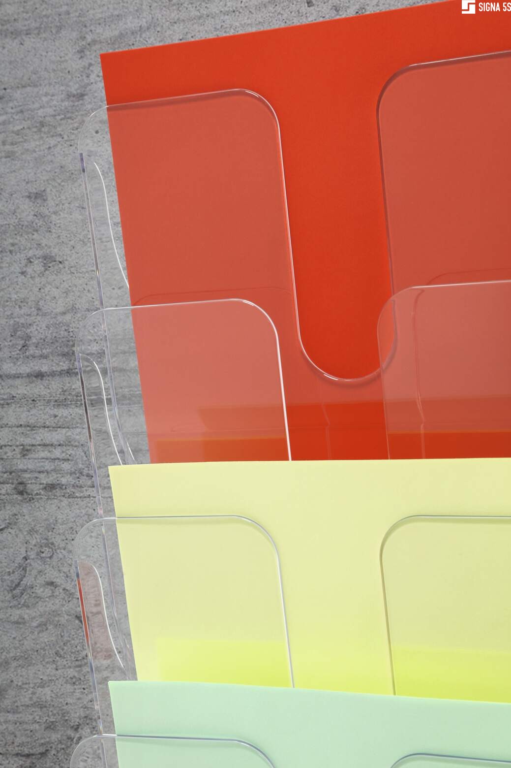 Pojemniki na ulotki FLEXIPLUS 6 A4, pionowe i poziome, 3 kolory