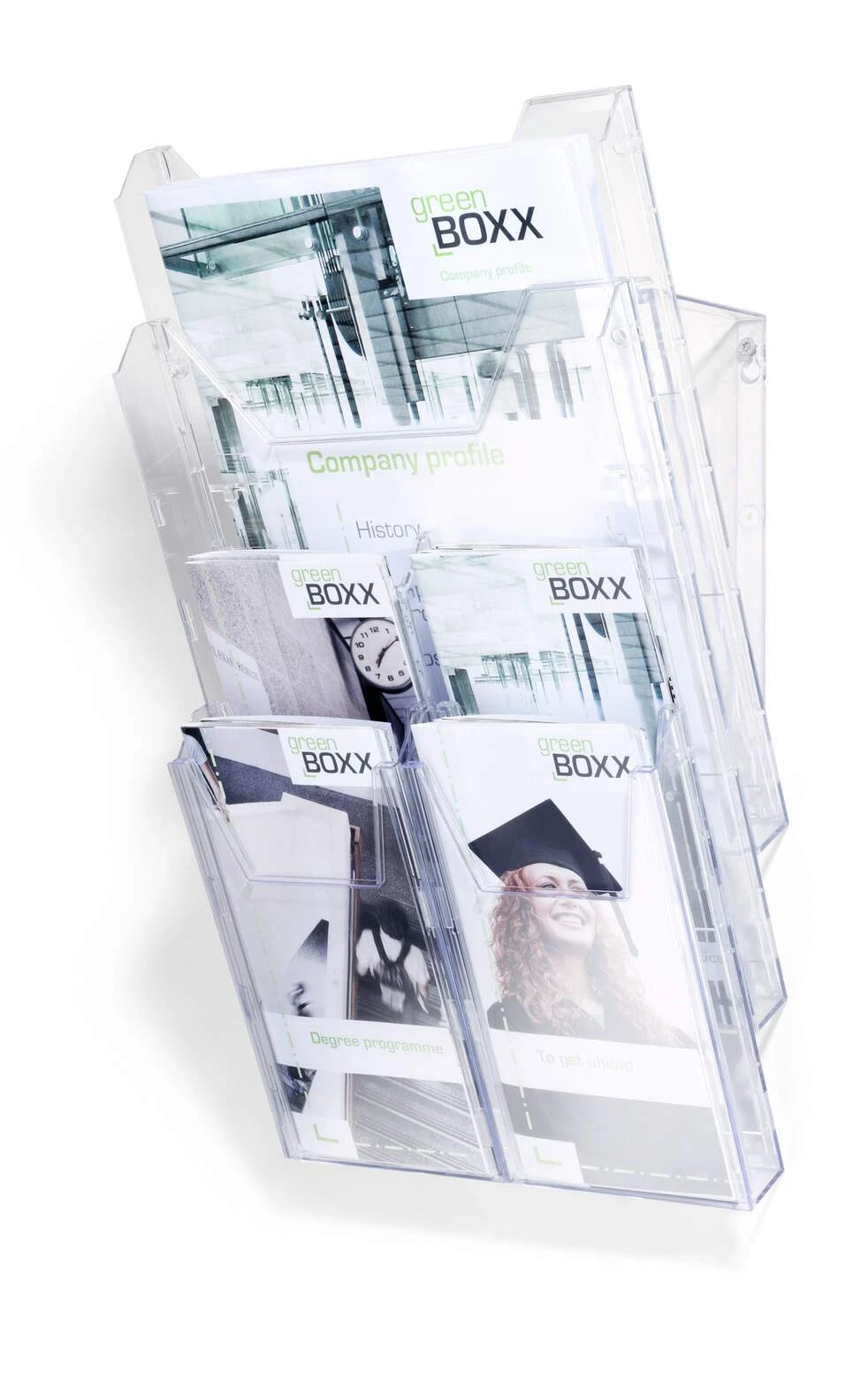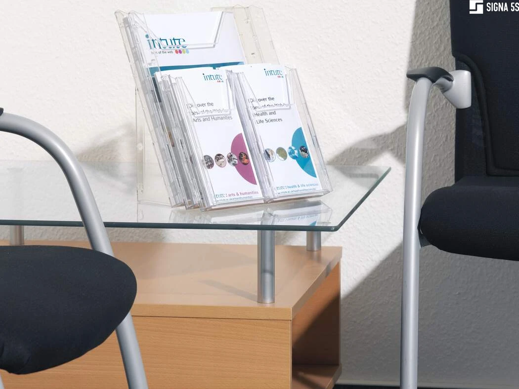 - Zestaw zasobników na prospekty w formacie 1/3 A4 (do 311 x 240 mm) lub A6 (do 210 x 116 mm)