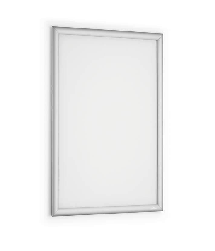 Wytrzymała aluminiowa rama zatrzaskowa to idealne rozwiązanie do szybkiej i łatwej wymiany informacji. Dzięki sprawdzonej technice składania, zmiana plakatu czy grafiki zajmuje zaledwie kilka sekund. Folia ochronna o niskim współczynniku odbicia światła, odporna na promieniowanie UV, zapewnia długotrwałą jakość wydruku. Odporny na uderzenia tylny panel z polistyrenu dodatkowo zabezpiecza zawartość. Ścięte narożniki nadają ramie estetyczny wygląd. W komplecie zestaw montażowy składający się ze śrub, kołków i czterech pasków samoprzylepnych. Mocowanie – w zależności od preferencji – możliwe w poziomie i w pionie. Łącznie z zestawem montażowym, szablonem do wiercenia i instrukcją montażową.