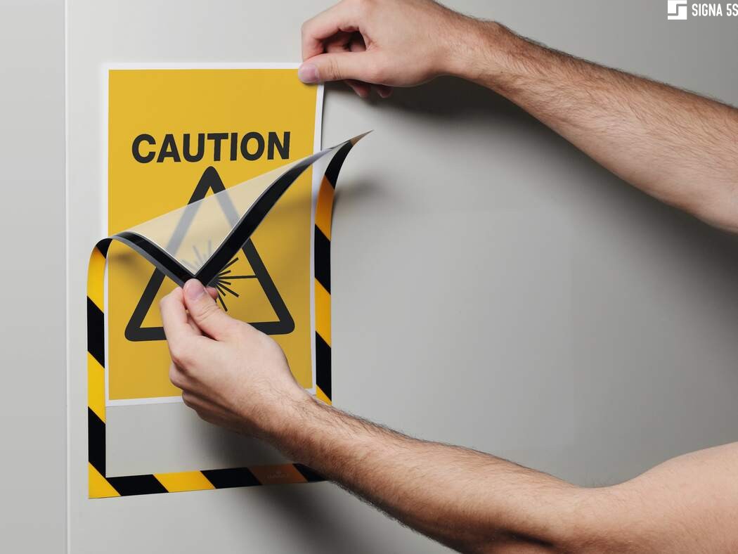 DURAFRAME SECURITY A4 Dwukolorowa magnetyczna ramka informacyjna do znaków bezpieczeństwa