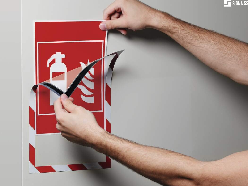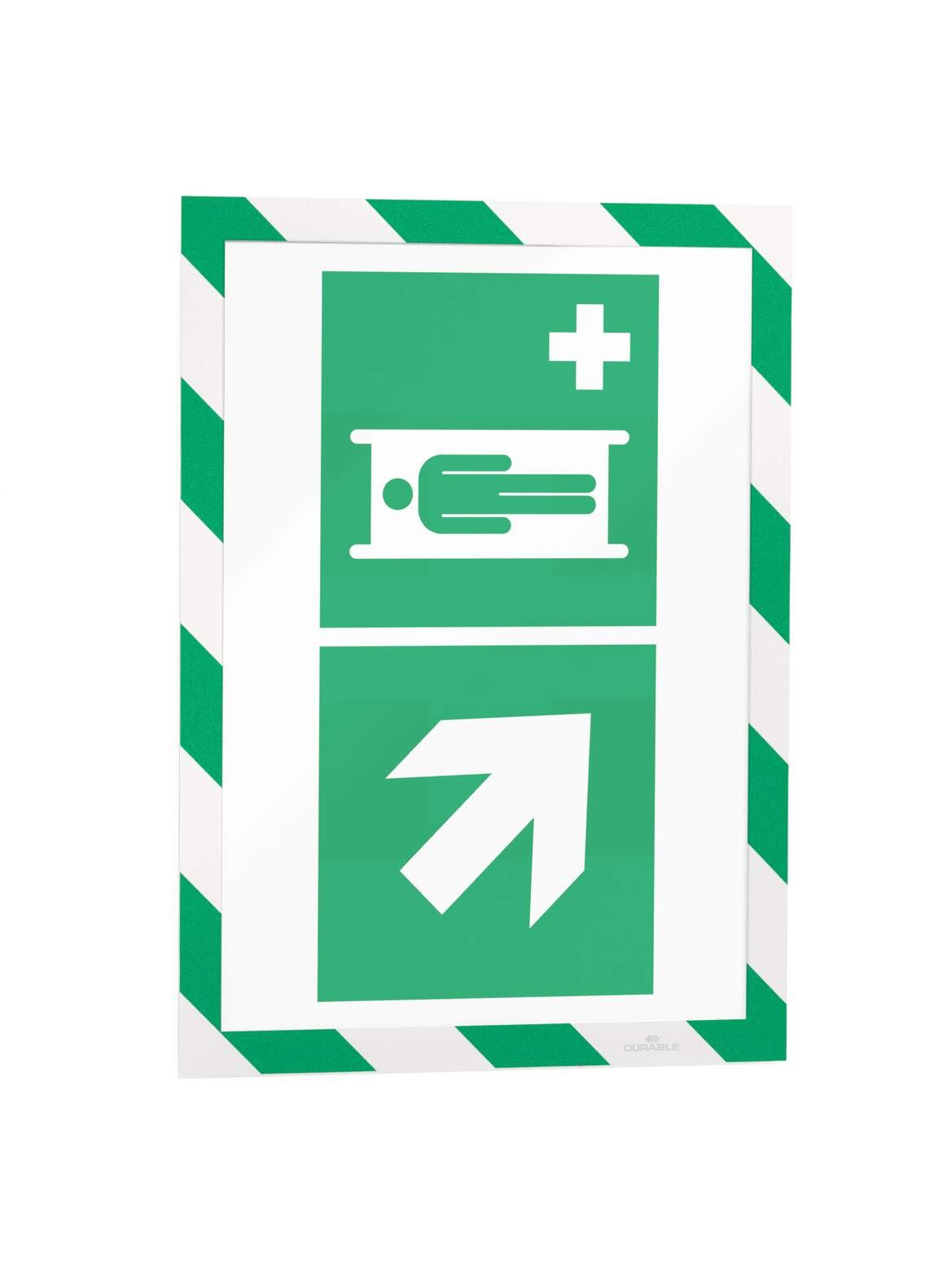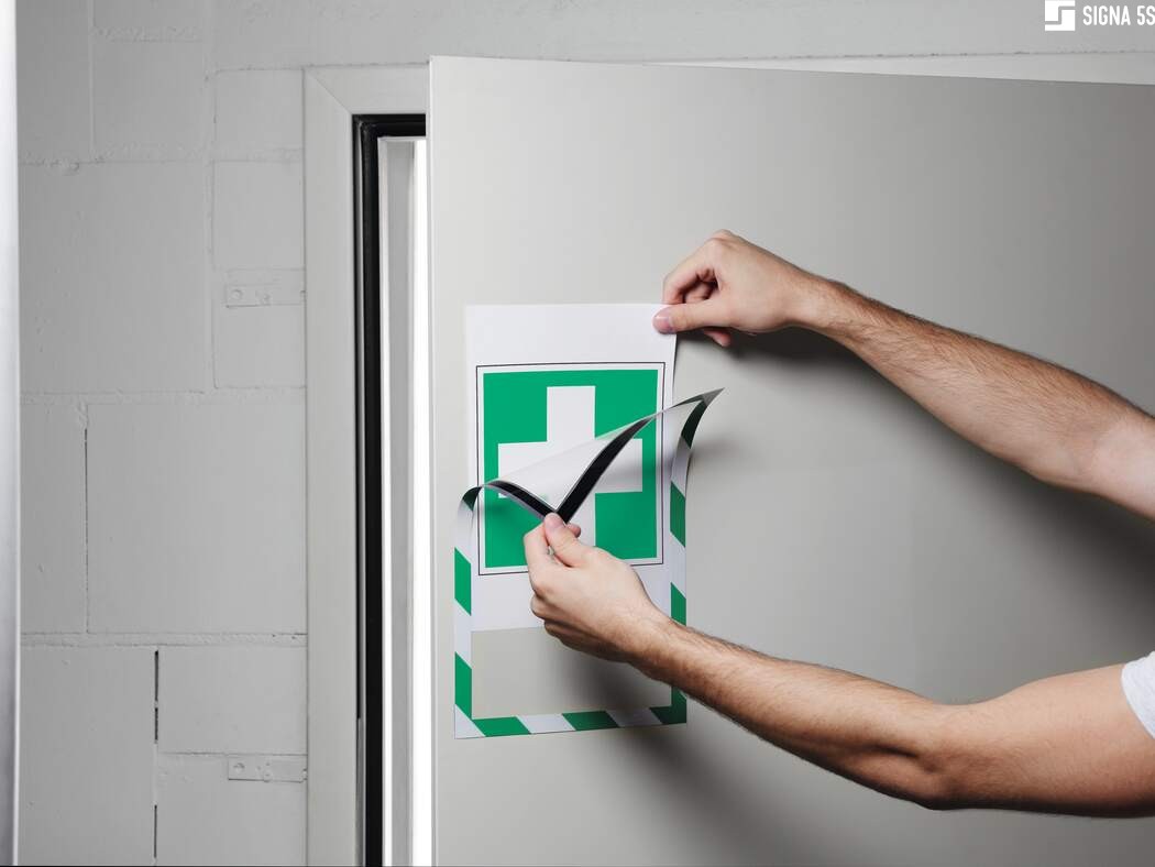 - Zastosowanie: Do prezentacji znaków związanych z bezpieczeństwem w formacie A4, np. kolor zielony / biały: pierwsza pomoc, plan dróg ewakuacyjnych. Czerwony / biały: ochrona przeciwpożarowa. Zółty / czarny: znaki związane z BHP