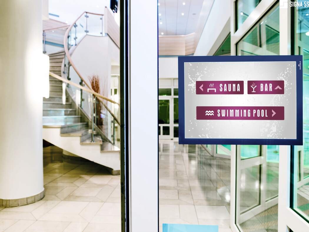 - Przy umieszczeniu na szklanej powierzchni informacja widoczna z obu stron dzięki możliwości umieszczenia 2 wkładów