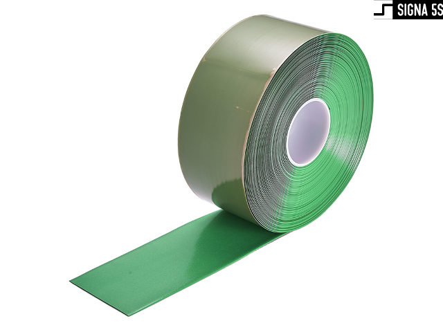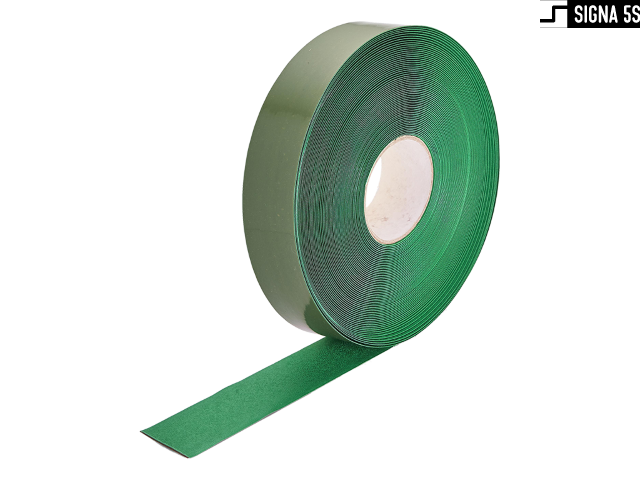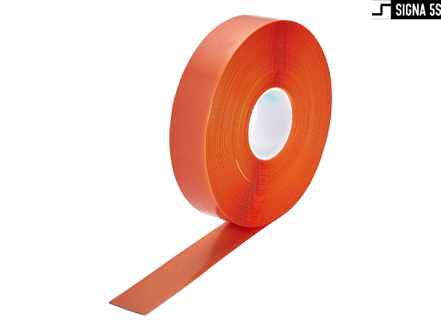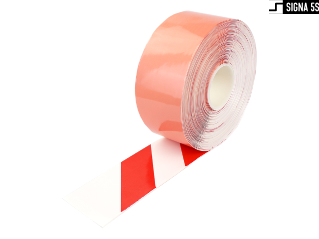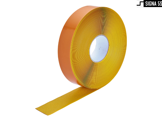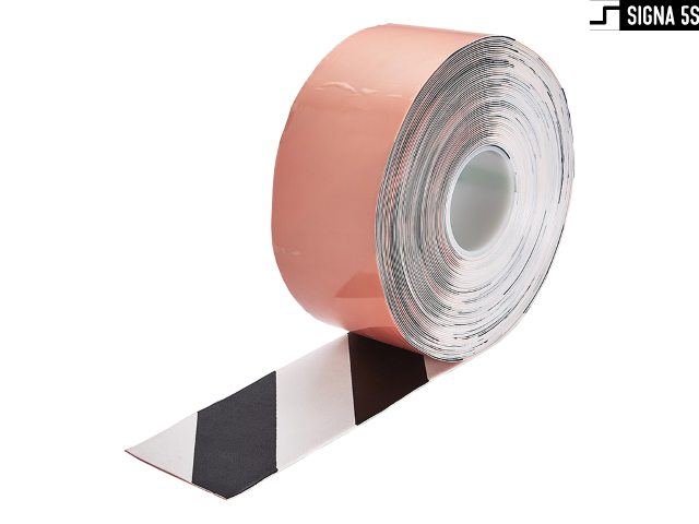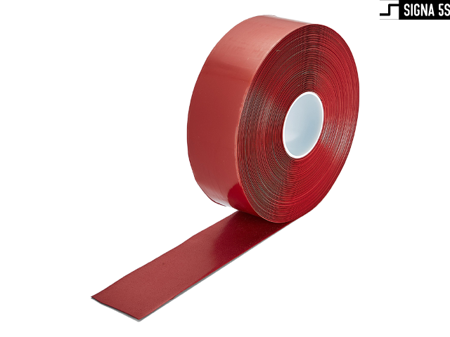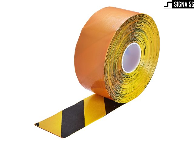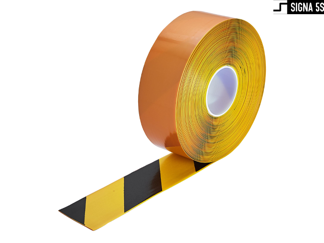 Samoprzylepna taśma znakująca do zastosowań takich jak wytyczanie: linii, ciągów komunikacyjnych, oznaczania stref i obszarów. Taśma wykonana z nierozciągliwego materiału PCV o grubości 1,30 mm z bardzo mocnym klejem kauczukowym. Fazki na krawędziach niwelujące ryzyko zerwania bocznego. Łączy w sobie doskonałą wytrzymałość mechaniczną i odporność na ścieranie. Posiada certyfikat antypoślizgowości R10. Rolka o 50mm szerokości i długości 30m.