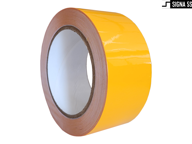 Samoprzylepna taśma znakująca do zastosowań takich jak wytyczanie: linii, ciągów komunikacyjnych, oznaczania stref i obszarów. Taśma wykonana z nierozciągliwego materiału PCV o grubości 0,19 mm z bardzo mocnym klejem akrylowym. Łączy w sobie doskonałą wytrzymałość mechaniczną i odporność na ścieranie. Bardzo wyraźne i jaskrawe kolory ułatwiają kodowanie. Rolka o 50mm szerokości i długości 33m.